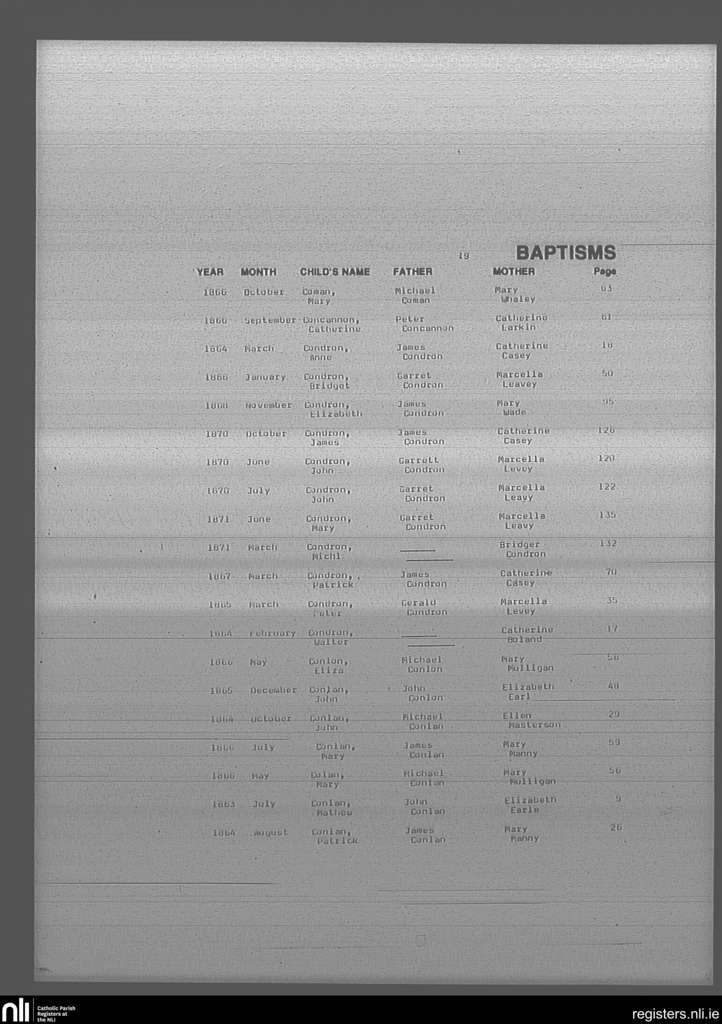 Mullingar; County of Westmeath; Diocese of Meath. Baptisms, July 1863 to June 1871
