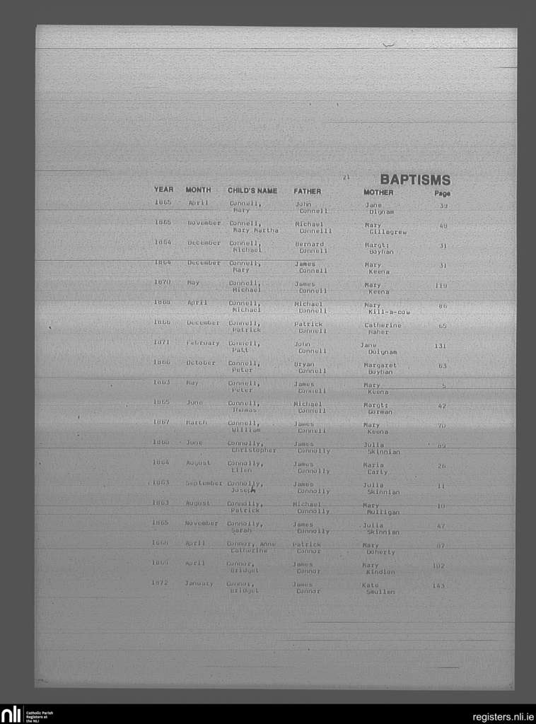 Mullingar; County of Westmeath; Diocese of Meath. Baptisms, May 1863 to Jan. 1872