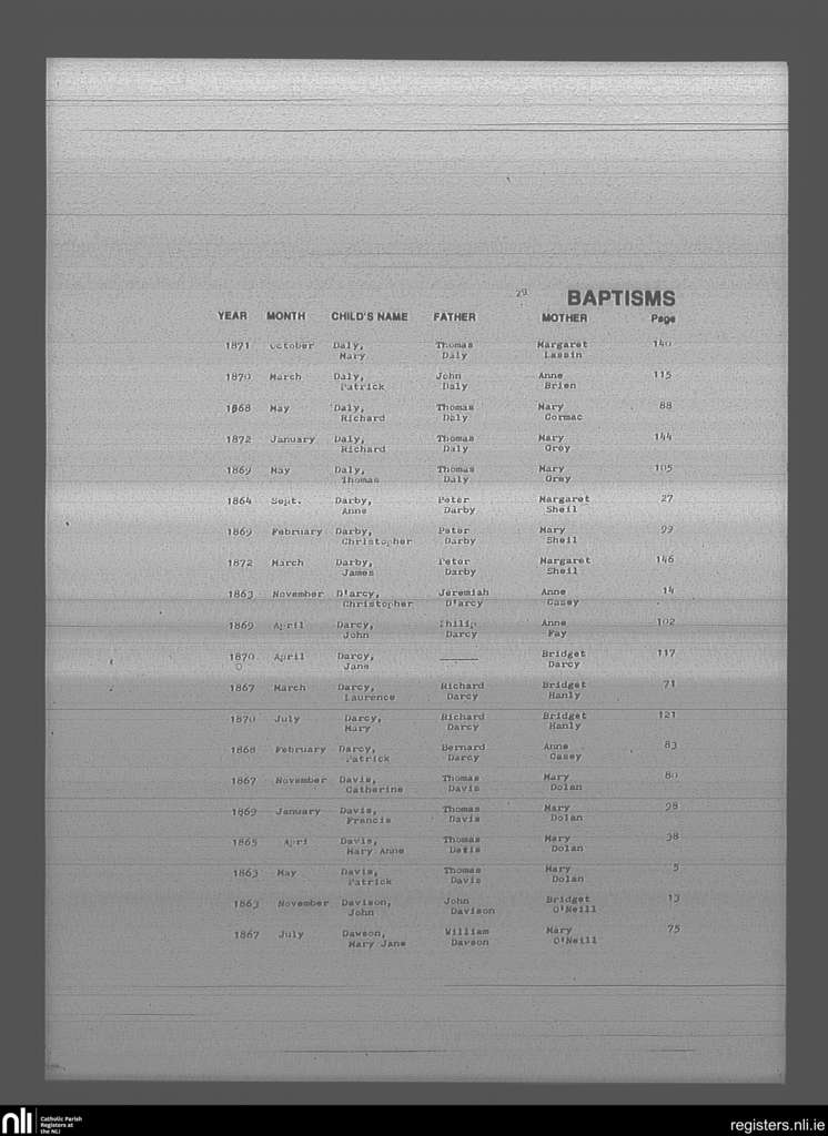 Mullingar; County of Westmeath; Diocese of Meath. Baptisms, May 1863 to Mar. 1872