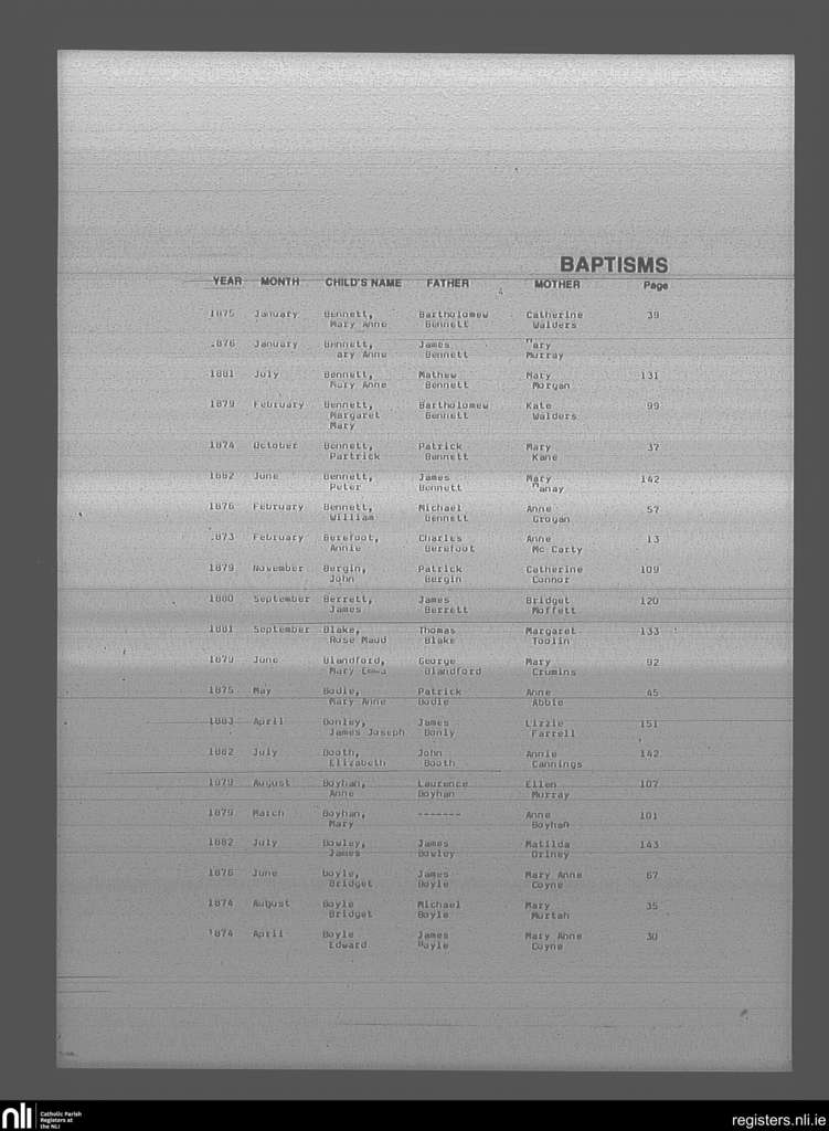 Mullingar; County of Westmeath; Diocese of Meath. Baptisms, Jan. 1884 to Aug. 1894
