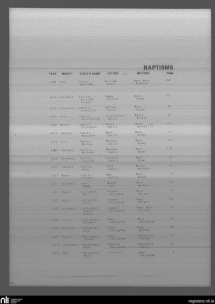 Mullingar; County of Westmeath; Diocese of Meath. Baptisms, Apr. 1884 to Sep. 1896