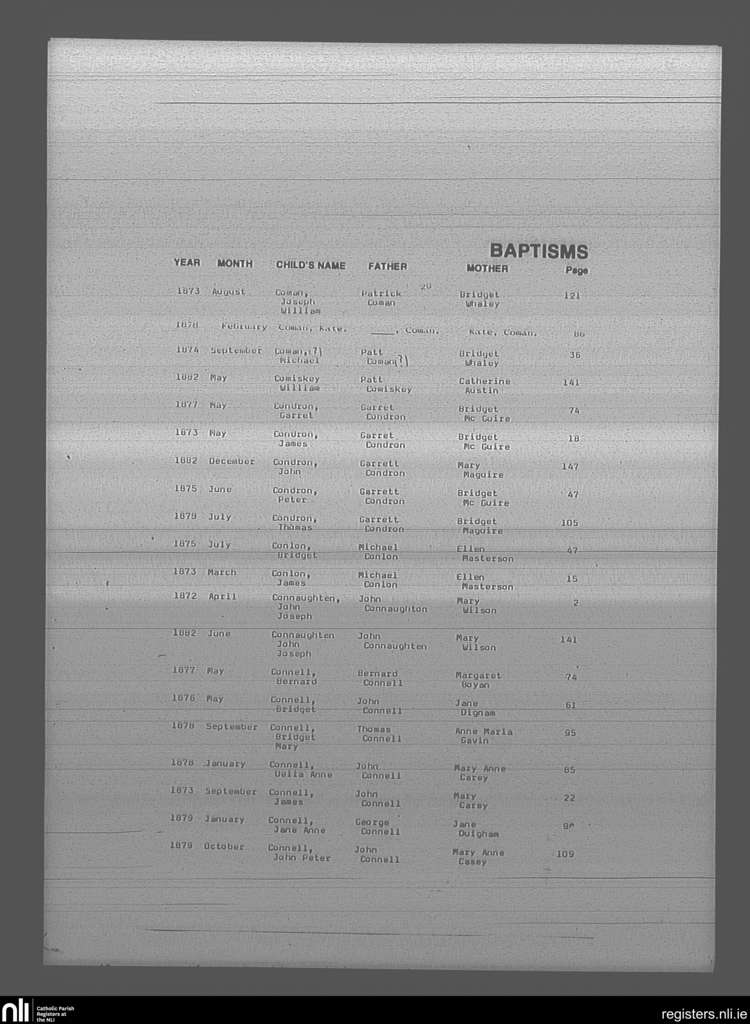 Mullingar; County of Westmeath; Diocese of Meath. Baptisms, Aug. 1883 to July 1895
