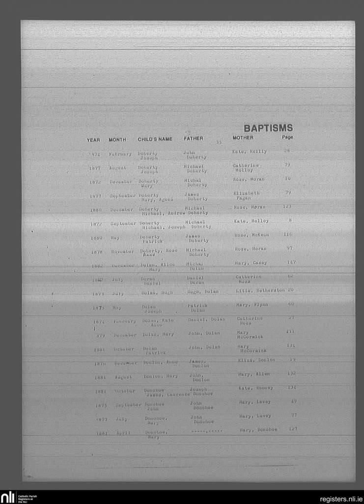 Mullingar; County of Westmeath; Diocese of Meath. Baptisms
