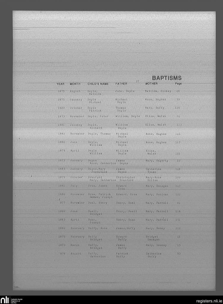 Mullingar; County of Westmeath; Diocese of Meath. Baptisms, Aug. 1883 to Sep. 1895