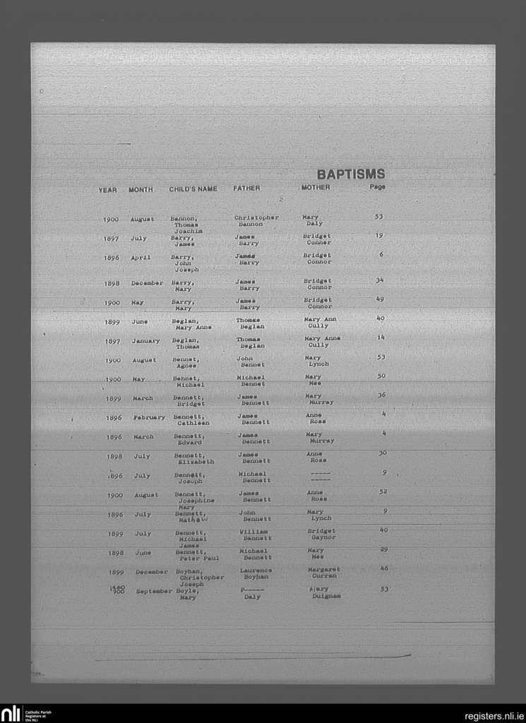 Mullingar; County of Westmeath; Diocese of Meath. Baptisms, Feb. 1896 to Sep. 1900