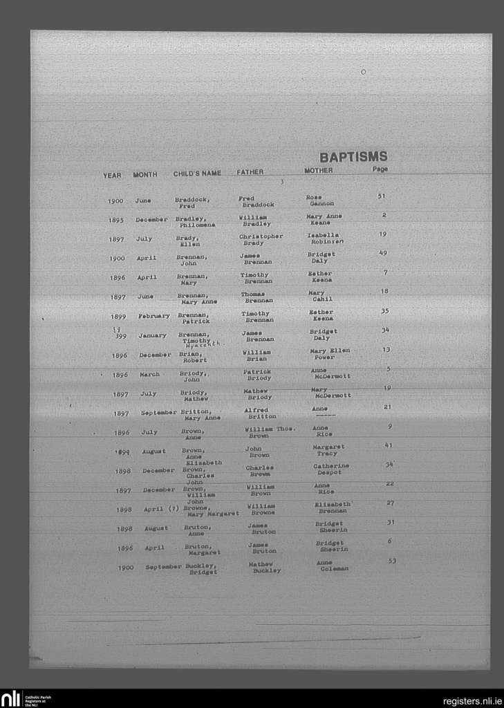Mullingar; County of Westmeath; Diocese of Meath. Baptisms, Dec. 1895 to Sep. 1900