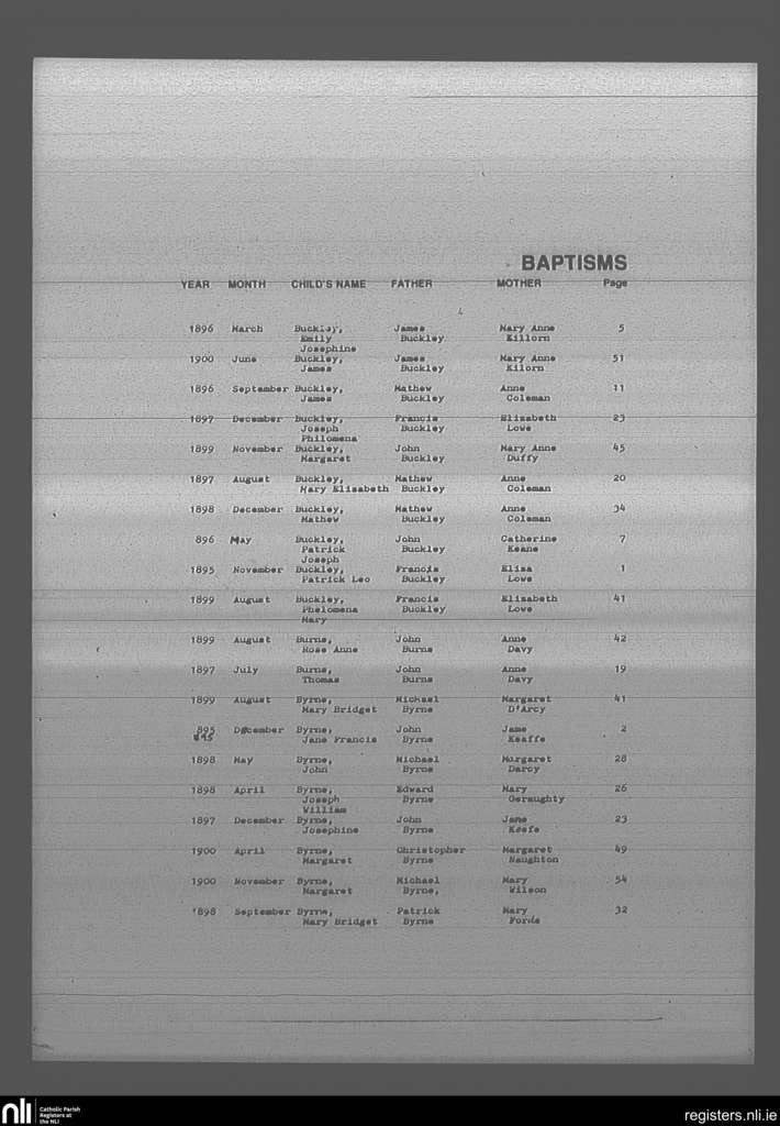 Mullingar; County of Westmeath; Diocese of Meath. Baptisms, Nov. 1895 to Nov. 1900