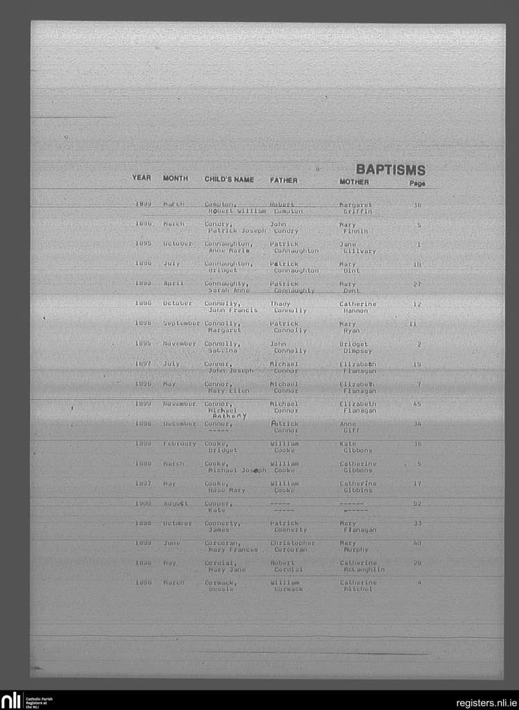 Mullingar; County of Westmeath; Diocese of Meath. Baptisms, Oct. 1895 to Aug. 1900