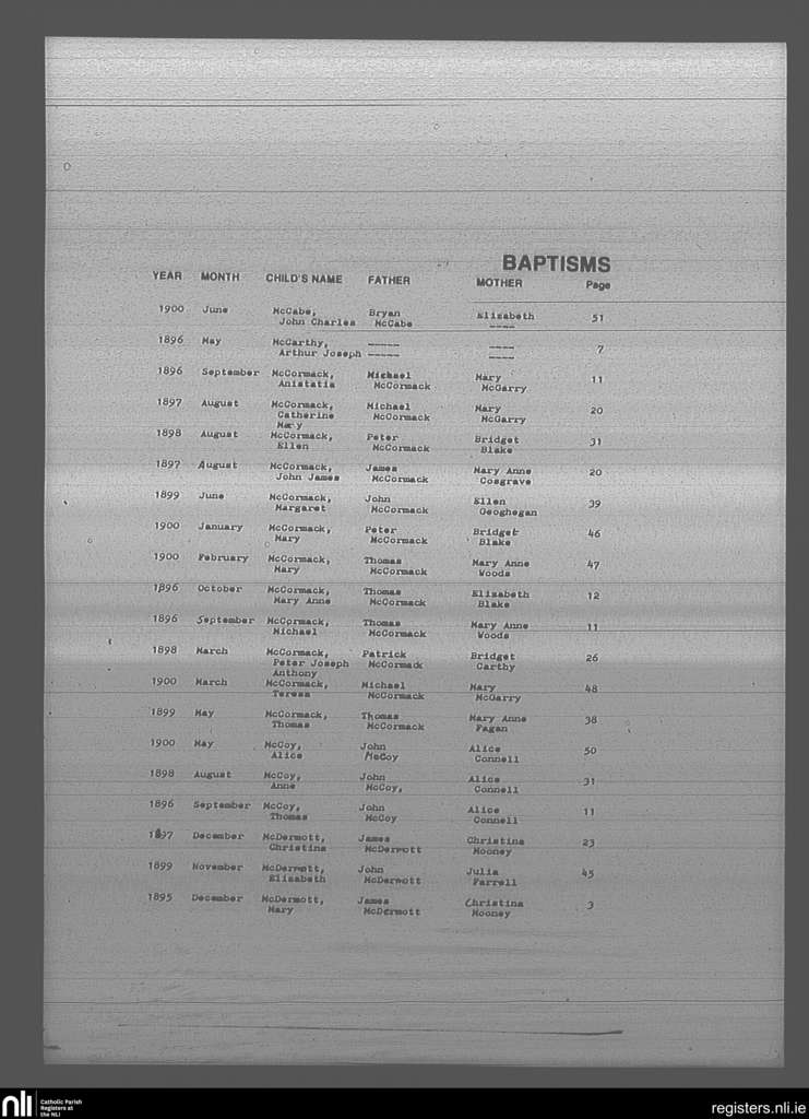 Mullingar; County of Westmeath; Diocese of Meath. Baptisms, Dec. 1895 to June 1900